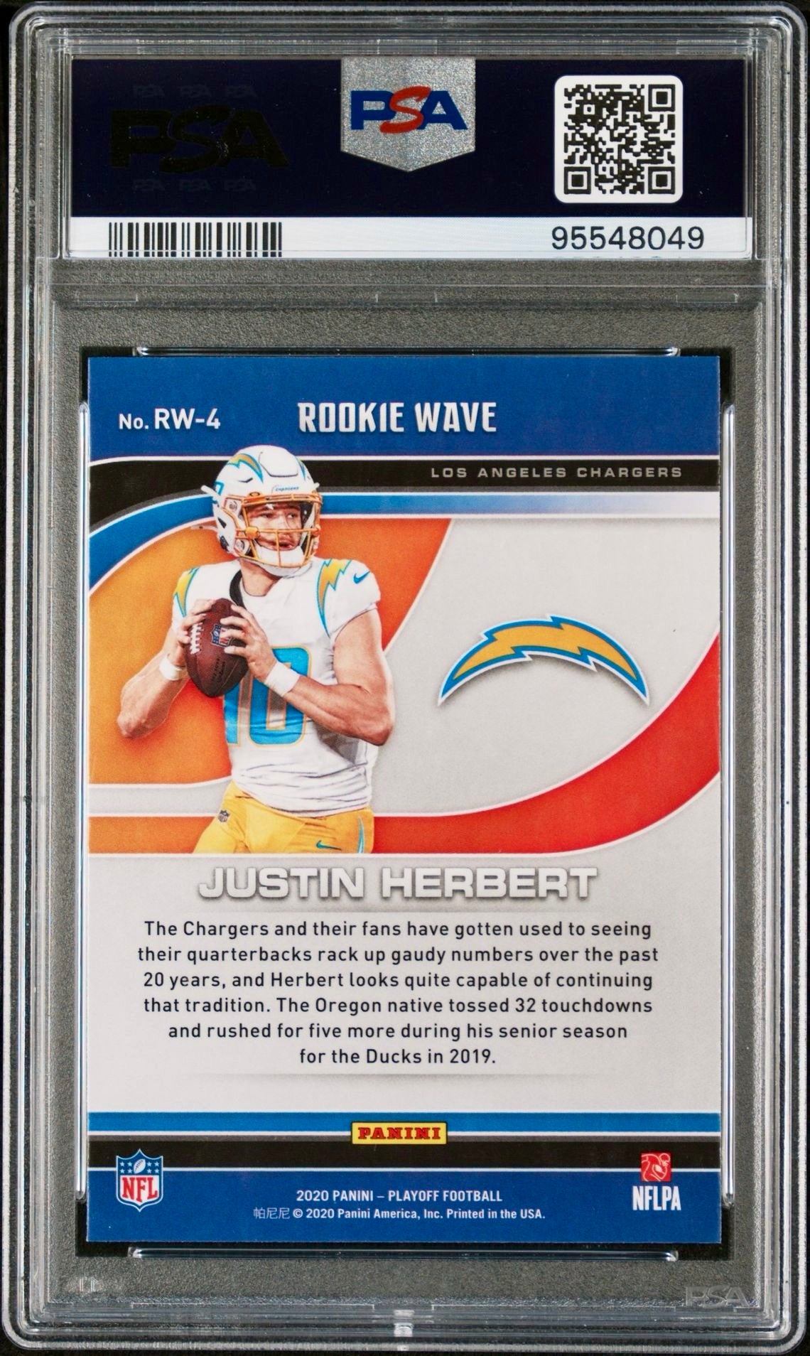 2020 PANINI PLAYOFF JUSTIN HERBERT ROOKIE WAVE PSA 10
